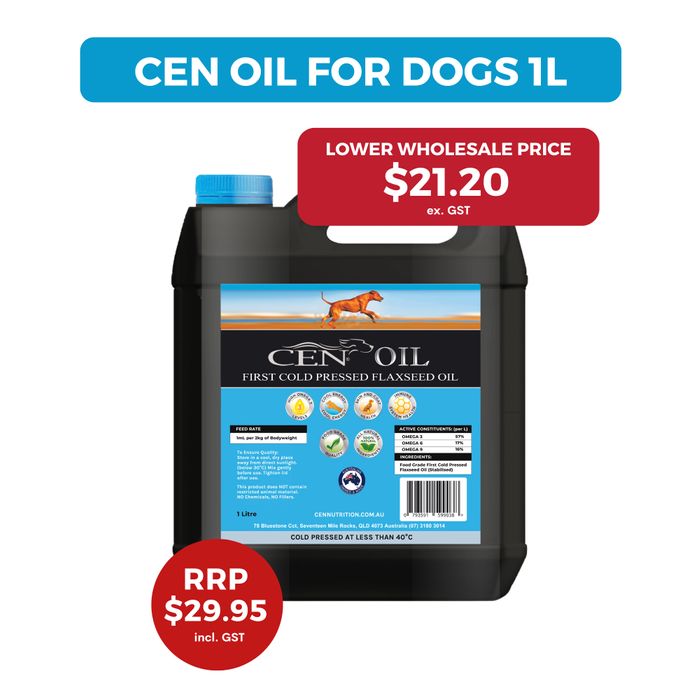 HOW DOES CEN OIL BENEFIT YOUR DOG?SKIN & COAT HEALTHIf your dog suffers from a dry or very dull coat, Omega 3 can help to improve the texture of their coat, making for fuller, shinier hair. A dull coat is often a sign of other health problems like a weakened immune system. CEN Oil can ensure that lipid barriers of a dog’s skin are sufficient. When the barriers are reduced, the dog’s natural coat oils get depleted, your dog may run a higher risk of developing skin conditions, especially if they are scratching/itching excessively.IMMUNE SYSTEM HEALTHThere is an importance of having the proper ratios of Omega 3 and Omega 6 consumed by your dog in order to reap the full health benefits. Research suggests that dogs that suffer from autoimmune, allergic, or inflammatory health conditions can benefit from increasing their dietary Omega 3 levels.JOINT HEALTHThe anti-inflammatory properties of essential fatty acids (Omega 3) that aid your dog fighting off skin irritants, can also help your dog’s joints and range of mobility, especially in dog’s that suffer from conditions like canine arthritis.
