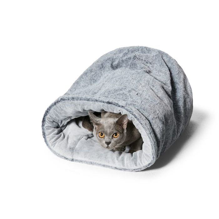 The Cat Bed ChinchillaDesigned for the quarantine services of Australia for use in their feline facility. The brief was big… with washability (for obvious reasons) & durability being most important of all. The Cat Bed is a favourite, as it can be inverted, reversed & converted & is fully machine washable & extra durable. It’s made using luxurious faux fur, offering two pile heights. The opening has flexible boning to keep it open or rolled down as you please. Use this bed in its tunnel form with the plush fur inside or out, rolled into a pod or turn it into a cuddly round bed. This ultimate cat bed is also great for small dogs, rabbits, guinea pigs, ferrets & rats. This cat bed is also covered by the Snooza Repair Service.