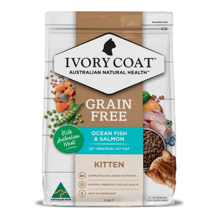 Essential Nutrition For Life. When You Choose Ivory Coat For Your Kitten, You’Re Choosing A Quality, Australian Made Product With Selected Natural Ingredients. Australian Meat Is The #1 Ingredient Across The Range, And All Products Are Formulated With No Added Artificial Colours Or Flavours. Ivory Coat Kitten Food Is A Specifically Formulated Grain Free Meal To Give Your Kitten Their Daily Complete Nutrition, Helping Them Grow Up Happy And Healthy.
